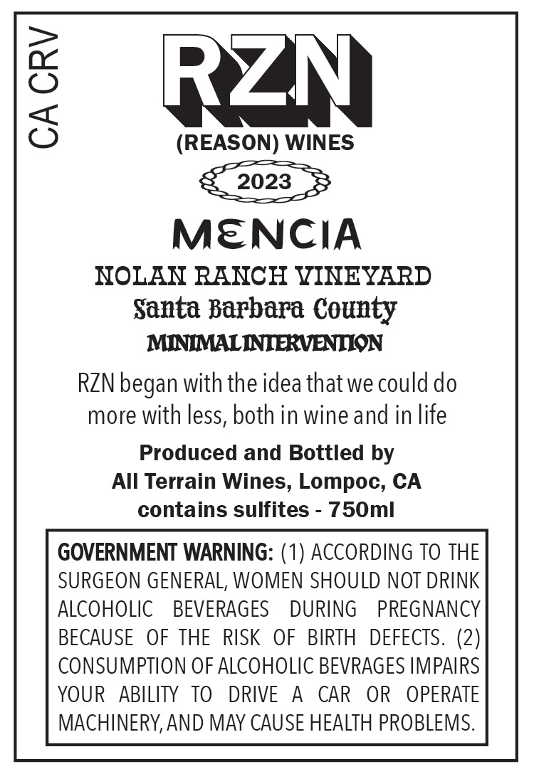 With the Spanish heritage linked to both the wine and Santa Barbara County, kind of made sense to go put them together and go Vaquero or Cowboy themed. We wanted this label to have the feel of a cattle branding, so this is our first and only no color label. Most of the fonts give you the feel of old Western "WANTED" posters. All finished with a classic lasso around the Mencia.